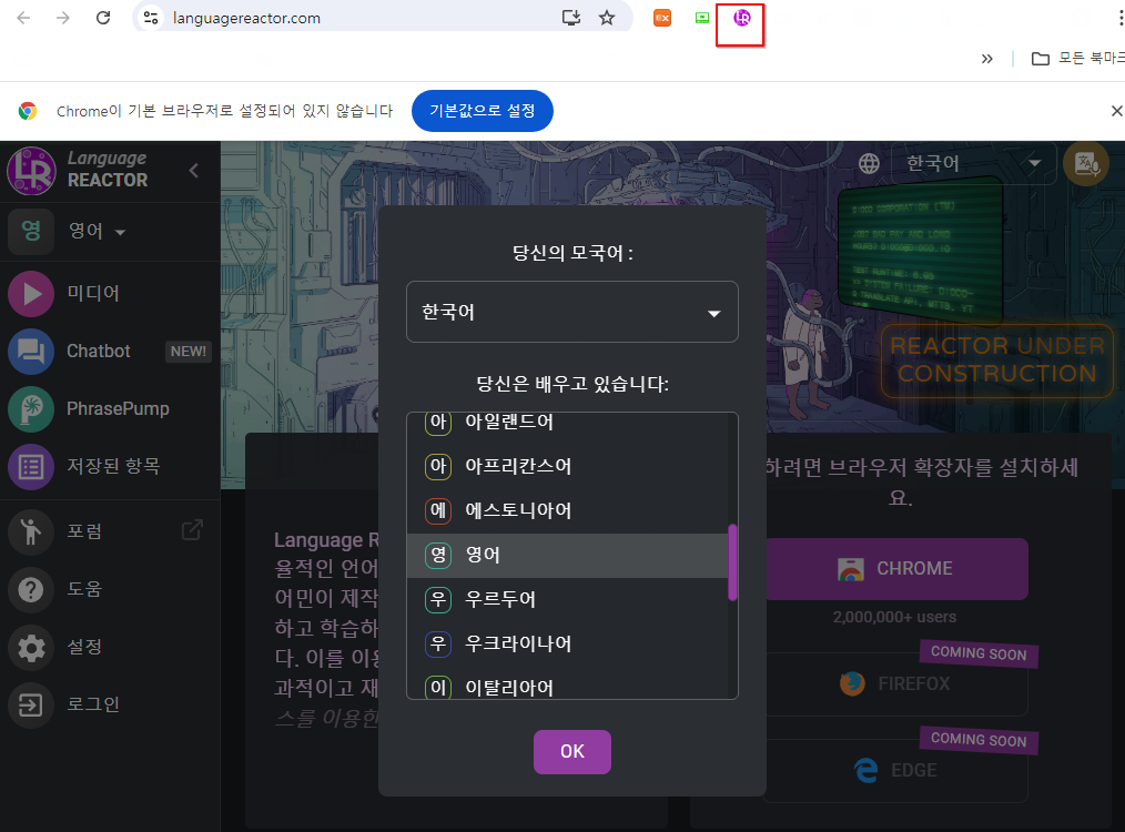 그 후 모국어와 배우고 있는 언어를 선택합니다.