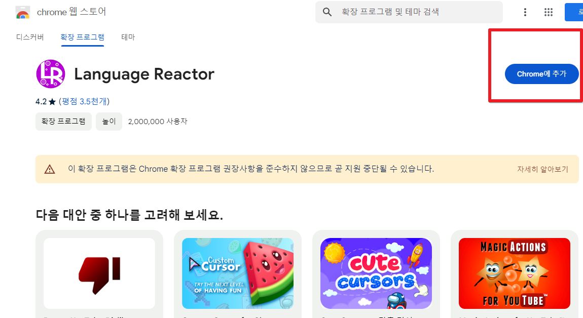 2. 확장프로그램 설치 사이트로 이동합니다.